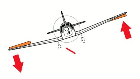 Hinged on the rears of the wings are two ailerons. These create roll, where the aircraft tips over. To roll left the left aileron goes up and the right goes down. They are normally in the outside half of the wing but are sometimes full span. Usually the ailerons also cause the aircraft to turn but not on some high performance aircraft. To yaw there is a rudder hinged on the back of the fin. The aircraft turns but does not tilt. To pitch the nose up or down there is an elevator hinged on the back of the tailplane. It is possible to fly with only two of the control surfaces, or even one, but most model aircraft have all three. The throttle varies the power that the engine or motor produces.