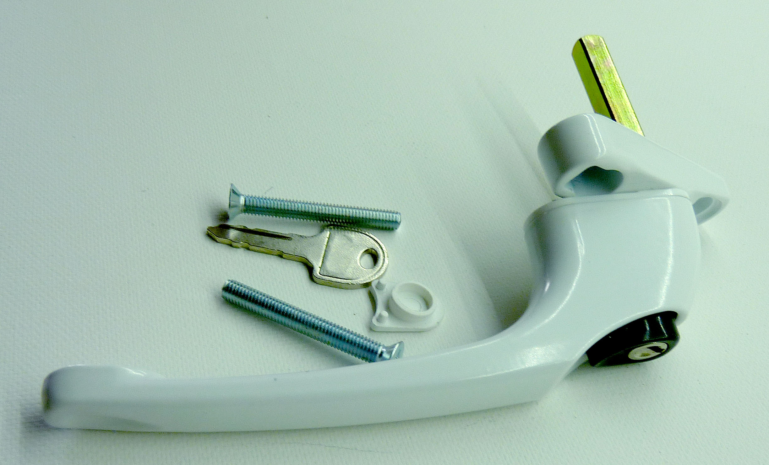 If it's still under warranty (probably ten years for fittings) you could call out the company to fix it but that takes time. The repair is very quick, cheap and simple. Go to a supplier like Toolstation or Screwfix and buy ten new handles. Why ten? They are usually cheaper if you buy ten and if one handle has failed others will follow before long. The keys for the new ones will all be the same but probably different from the old ones so it reduces the number of keys you will eventually need. Your handle will probably be straight but if offset to left or right make sure you buy ones the same. They are a bit more expensive. If you have two opening casements next to each other it is best to replace both handles so they match. You can store the intact one to use elsewhere.