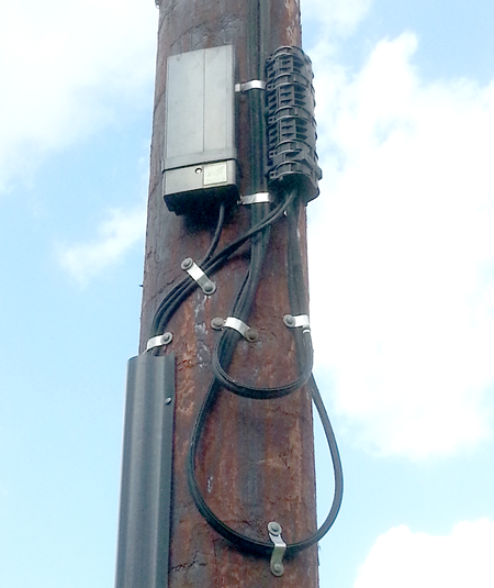 I have taken another look at local phone poles and seen that some carry connectors like the ones below advertised by Eurocoms.co.uk for repairs. The one in the ground shown above looks like a double-ended version. Perhaps OpenReach has been cabling up without me noticing? It seems that these things are called 'fibre optic splice closures'.